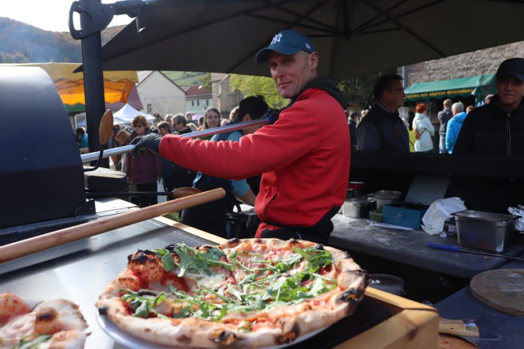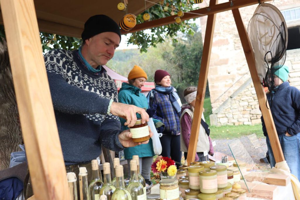 Frisch aus dem Rauch und dem Backofen kommen Räucherforellen, Kartoffeldätscher und Pizza. Frisch vom Rost gibt es Bratwürste und Rostbrätel, daneben Wildgulasch mit Klößen. Es werden feine Kaffeespezialitäten gereicht und Liebhaber von Kuchenspezialitäten kommen auf ihre Kosten. Käse von Schaf und Kuh kann probiert werden, ebenso Honige, handgemachte Aufstriche, Essige und Essigprodukte, dazu Kräutersalze. Ein Stand hält Spezialitäten aus dem Eichsfeld bereit. Nicht weniger breit ist die Palette regional erzeugter Getränke: Obstweine, Obstsäfte, Cidre, Limonaden sowie verschiedene regionale Biere, Brände und Liköre gehören dazu.