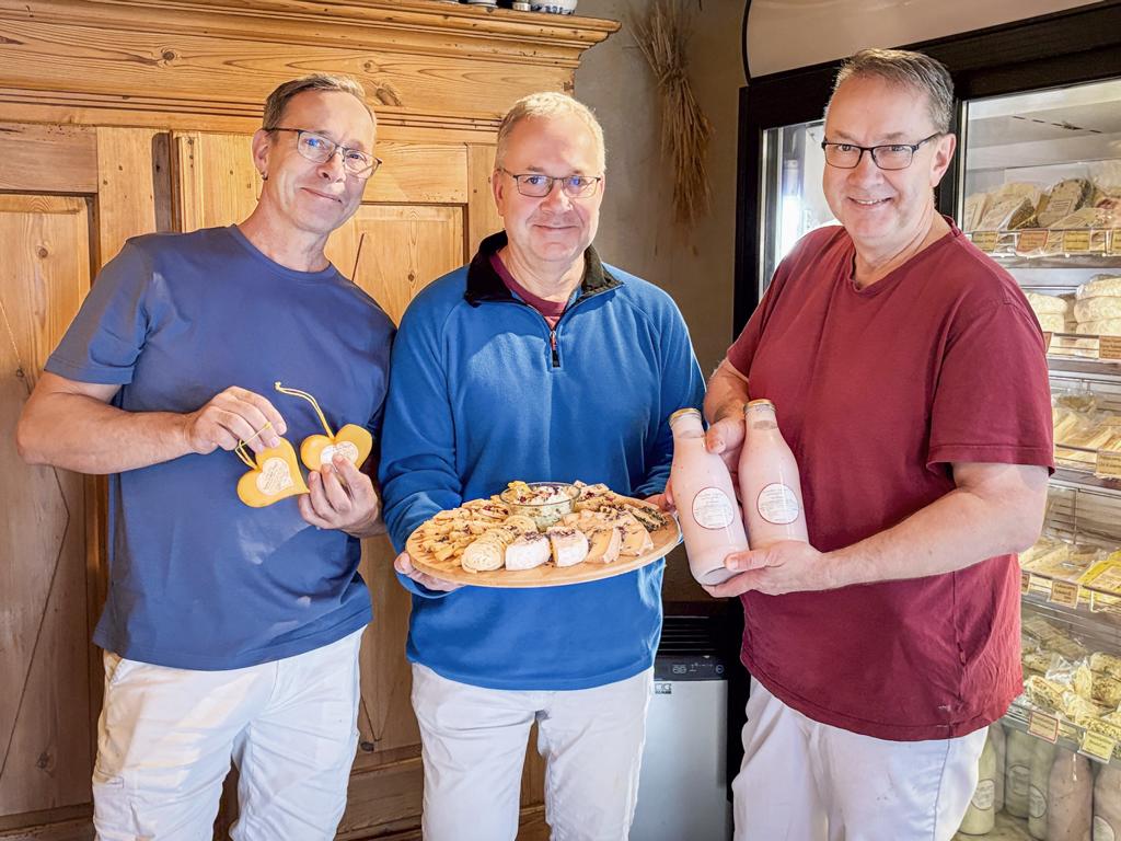 Die Hofkäserei Büttner – das sind die drei Brüder Andreas, Christfried und Matthias Büttner. Über das Räuchern von zugekauftem Käse kam es zum Aufbau einer eigenen Käserei. Heute stellen wir den Käse selbst her. Die hochwertige Milch stammt von kleinen regionalen Erzeugern. Neben Räucherkäse bieten wir handgepflegte Naturrindenkäse und verschiedene Schnittkäse an. Außerdem stellen wir Butter, Buttermilch, Joghurt und Kräuterfrischkäse her. Der Käse wird auf regionalen Handwerker- und Bauernmärkten und in unserem Hofladen angeboten.